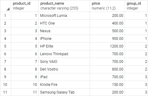 PostgreSQL Window Function - DENSE_RANK function Within the laptop product group, rank 1 is assigned twice to Dell Vostro and Sony VAIO. The next rank is 2 assigned to HP Elite.